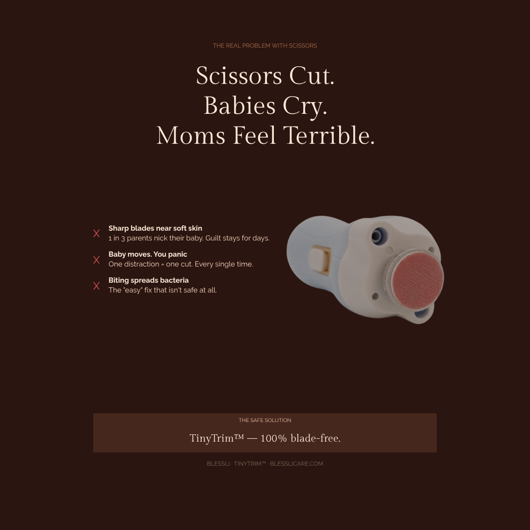 Yes. TinyTrim™ was designed from day one for newborns. The ultra-fine pads (1–2) are gentle enough for the most delicate skin. No blades, no sharp edges — just a soft rotating file.